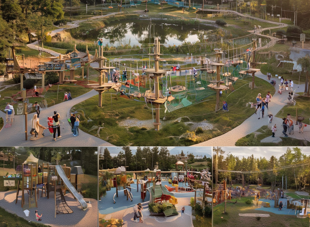 The development of adventure parks includes planning, design, and execution of outdoor and semi-outdoor attractions, which focus on physical activity, discovery, and limited risk. Such parks can have rope courses, zip lines, climbing features, obstacle trails, nature-based challenges, and hybrid adventure-play features.